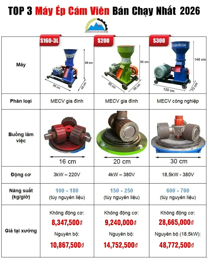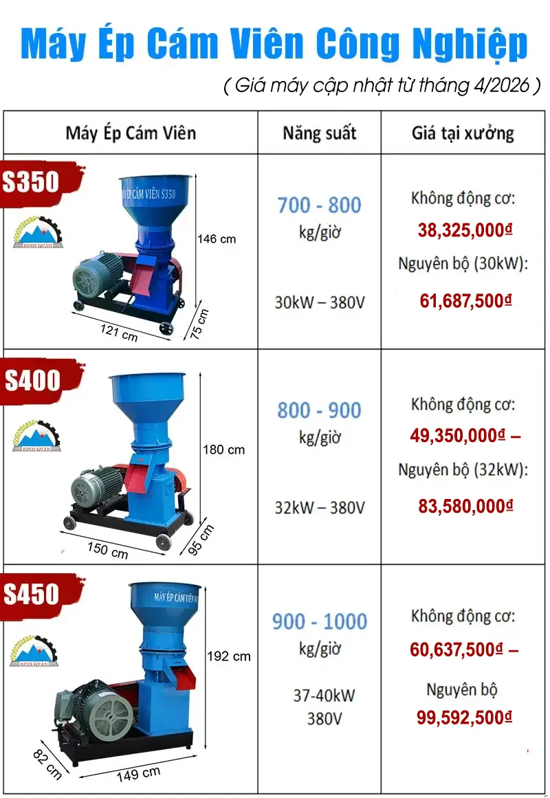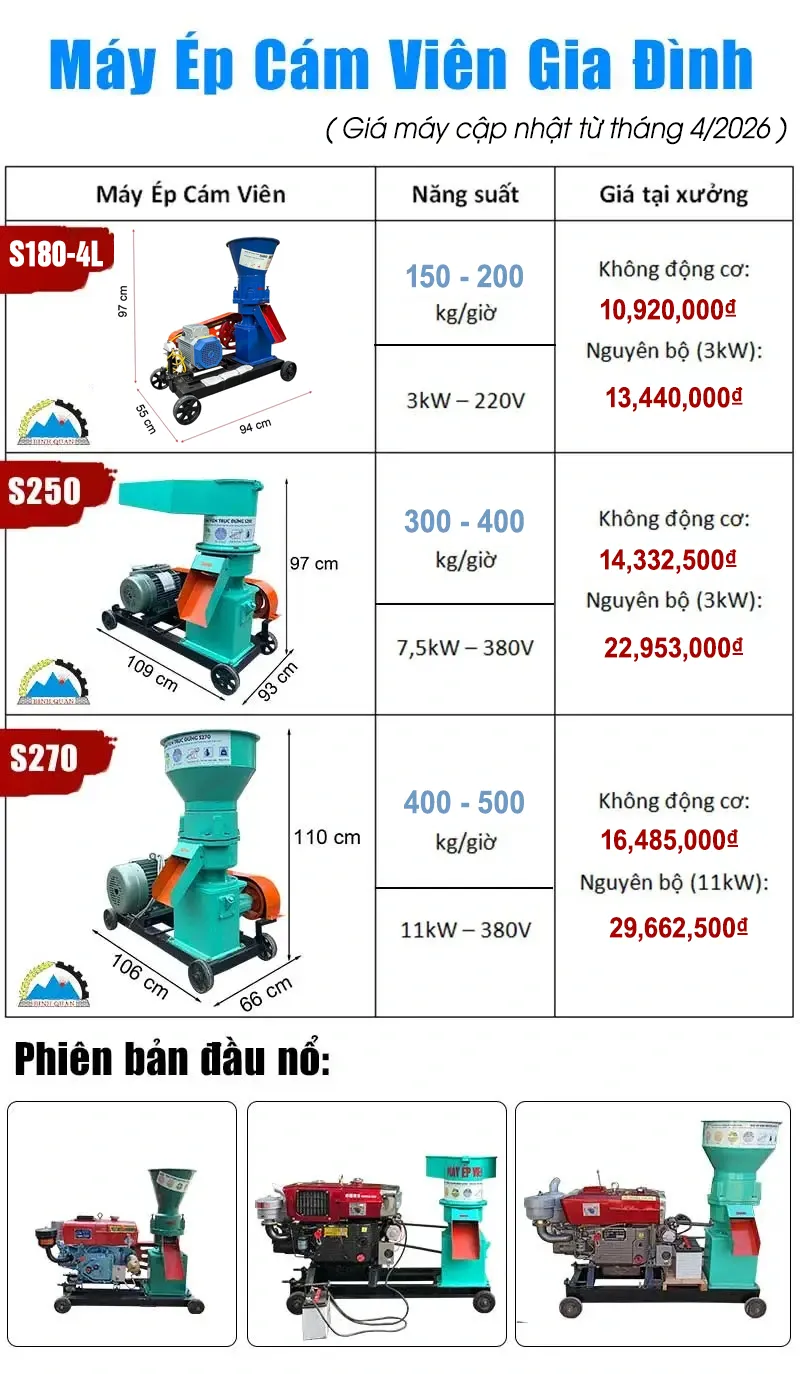 3 Dòng máy ép cám viên bán chạy nhất 2026 có giá bao nhiêu?