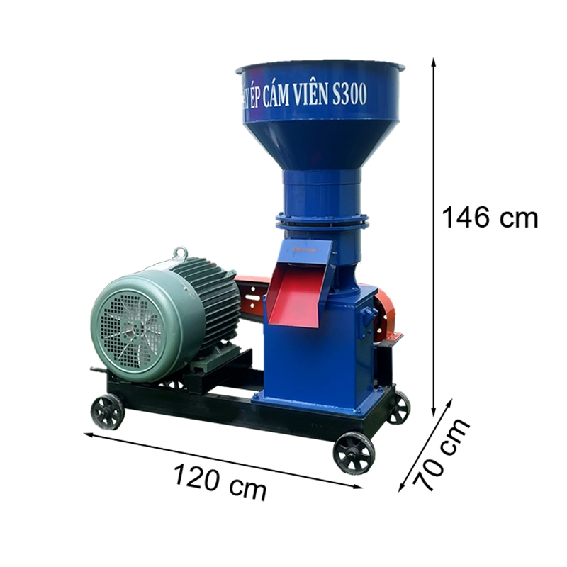 Khác với 2 dòng máy trên, Máy ép cám viên S300 này là dòng máy công nghiệp có công suất cao. Phù hợp với các trang trại quy mô lớn hay các nhà máy sản xuất cám đóng bao.