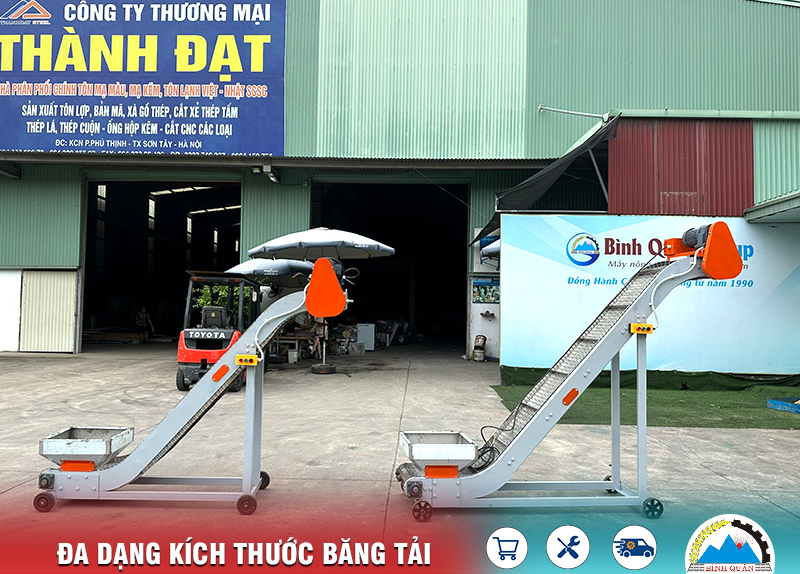 Bằng tải bèn lề nghiêng là một giải pháp lý tưởng cho các doanh nghiệp cần vận chuyển hàng hóa theo hương nghiêng lên cao, giúp tối ưu hóa quy trình làm việc và nâng cao hiệu suất