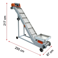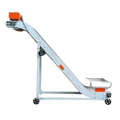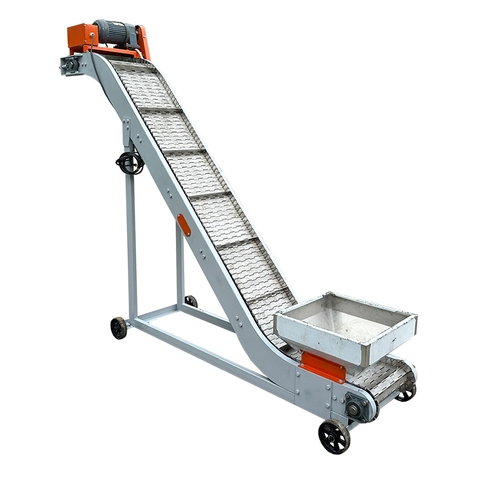 - Băng tải bản lề nghiêng có khả năng vận chuyển các loại nguyên liệu thô như ngũ cốc, cám viên.. từ vị trí thấp lên vị trí cao một cách hiệu quả