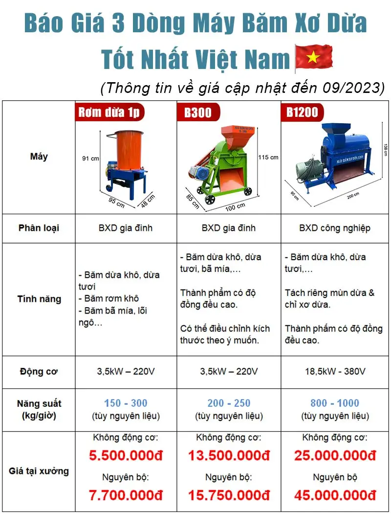 Báo giá 3 dòng máy xay xơ dừa tốt nhất Việt Nam