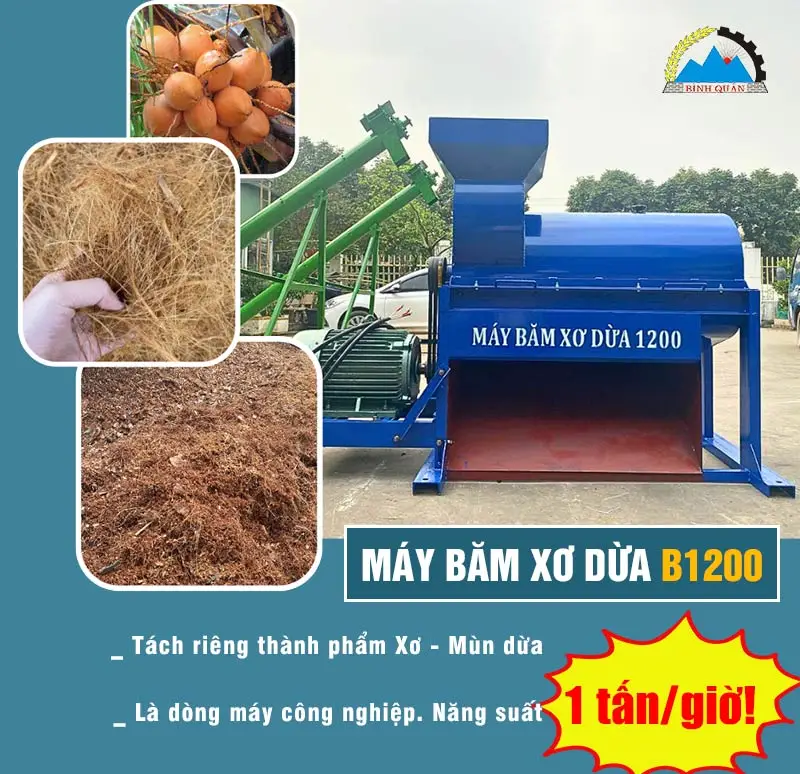 Ngoài ra, bà con có thể tham khảo thêm các dòng máy khác như: Máy băm xơ dừa B250, Máy băm xơ dừa B350, Máy băm xơ dừa B450.