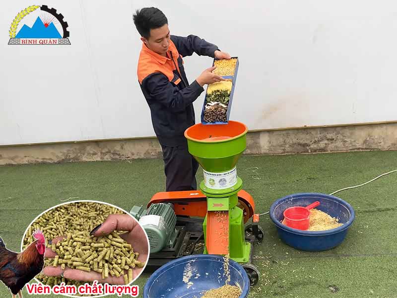 Để tạo ra những viên cám chất lượng đủ chất cho gia cầm, bà con có thể sử dụng Máy ép cám viên của Bình Quân. Đây là công ty chuyên sản xuất máy nông nghiệp số 1 Việt Nam. Tại đây có nhiều dòng máy ép cám viên cho ra năng suất từ 60kg đến hàng tấn cám viên mỗi giờ, phù hợp với mọi trang trại chăn nuôi quy mô lớn nhỏ khác nhau. Máy có tính năng Nghiền - Ép các loại bột cám, ngô hạt, rau, cua, cá, ốc,... thành viên cám đủ dinh dưỡng. Cám sau khi ép viên có thể cho gia cầm ăn ngay, hoặc phơi khô đóng bao dùng dần. Để biết thêm thông tin về sản phẩm và lựa chọn dòng máy phù hợp với mô hình chăn nuôi nhà mình, bà con hãy gọi đến số hotline 09.1234.2772 để được tư vấn và giải đáp nhanh nhất nhé!