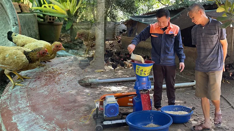 Nên trộn đều hỗn hợp cám cho vào máy ép thành viên cho gà ăn. Điều này sẽ giúp gà ăn được nhiều hơn và đảm bảo dinh dưỡng trong từng viên cám