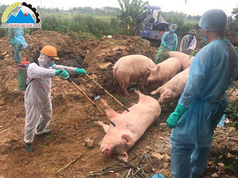 - Nhanh chóng tiêu hủy toàn bộ các sản phẩm bị nhiễm bệnh: Các sản phẩm bị nhiễm bệnh như thịt, nội tạng, da, lông, phân, cần được tiêu hủy đúng cách. Có thể đốt hoặc chôn các sản phẩm này để đảm bảo không gây lây lan bệnh tả lợn châu Phi cho đàn lợn khác hoặc con người.