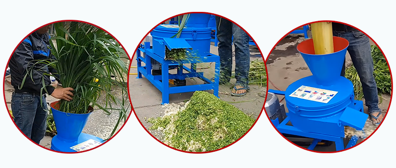 Băm nhỏ nghiền nát nhuyễn dùng các nguyên liệu như: Cây chuối, rau bèo, cỏ voi, cây và bắp ngô, thân củ sắn,... ra sản phẩm dạng nát nhuyễn giúp vật nuôi dễ dàng hấp thụ và tiêu hóa.