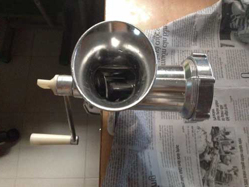 Máy ép cám viên bằng tay là chế từ máy đùn thịt của các bà chuyên xay thịt làm nem, chúng ta chỉ cần mua về và chế máy xay thịt thành máy ép cám viên rất đơn giản. Chỉ cần thay cái mặt bích nhỏ hơn là có thể tự làm cám cho chim, cho gà ăn rồi.