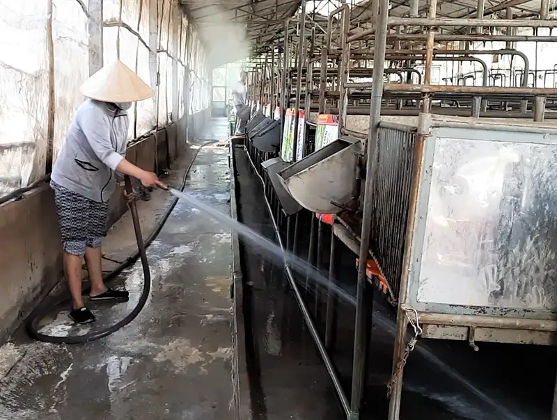 - Trong thời gian chờ nhập heo chuồng nuôi được phun sát trùng ngày 1 lần