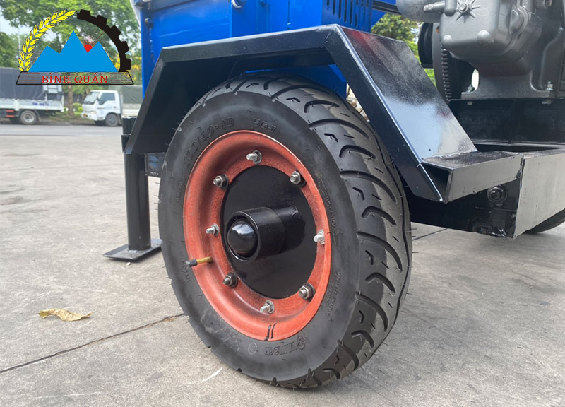 - Lắp đặt 2 bánh xe và móc kéo thuận tiện di chuyển vị trí đặt máy. Kết hợp 2 chân trụ giữ chắc máy, không gây rung lắc