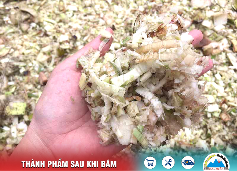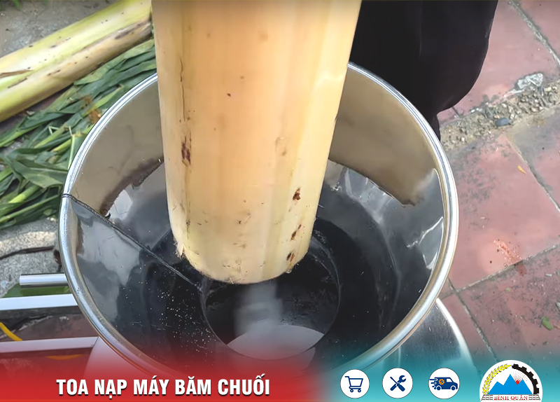 - Máy băm nguyên cây chuối có đường kính 16 cm trở lại, cây lớn hơn có thể tách bớt bẹ vừa miệng toa là được