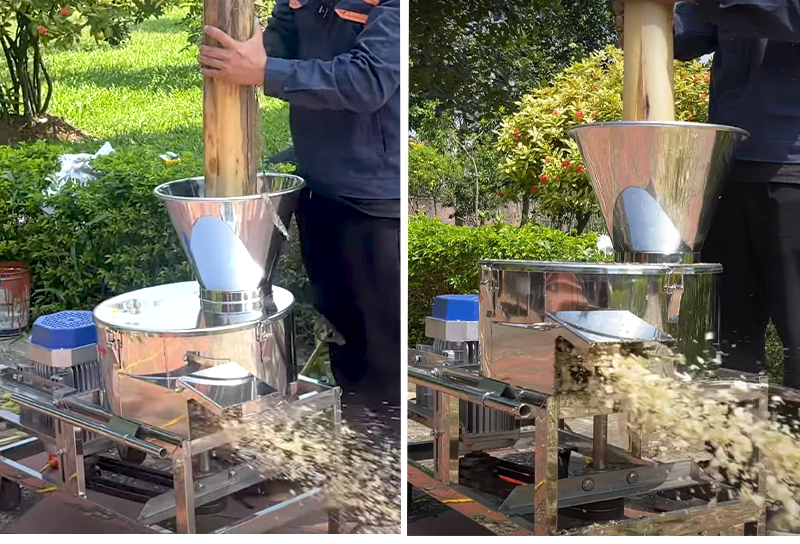 Nhờ đó, máy có thể băm nhỏ nguyên liệu cây chuối có đường kính 16cm trở lại mà không phải chặt nhỏ trước