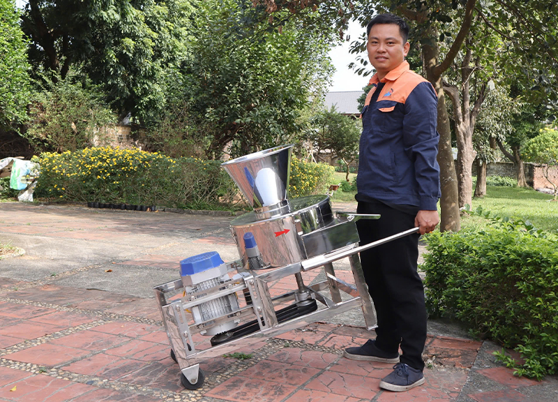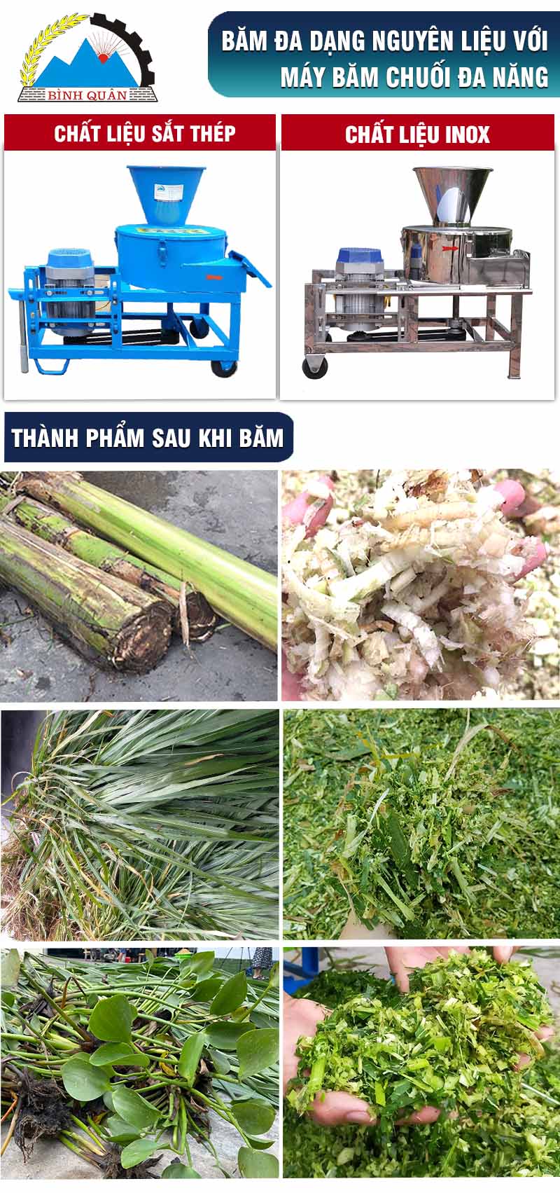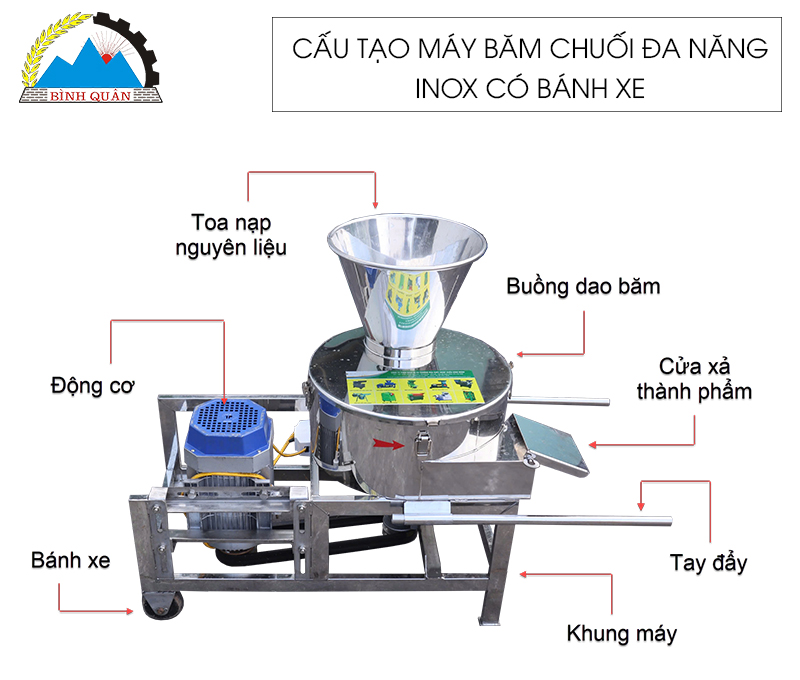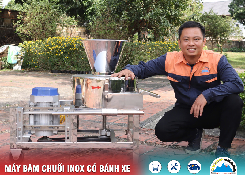 Máy băm chuối đa năng inox có bánh xe do công ty Bình Quân sản xuất - lựa chọn hoàn hảo cho các hộ gia đình và trang trại chăn nuôi