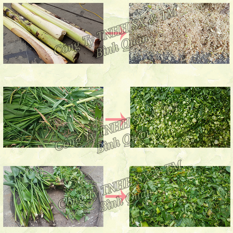 - Tính năng : Máy có chức năng thái, băm nhuyễn mọi loại nguồn thức ăn thô xanh thân cây chuối, thân cây ngô, rau muống, bèo tây, rau khoai lang,... và nhiều loại rau cỏ khác trong khoảng thời gian ngắn