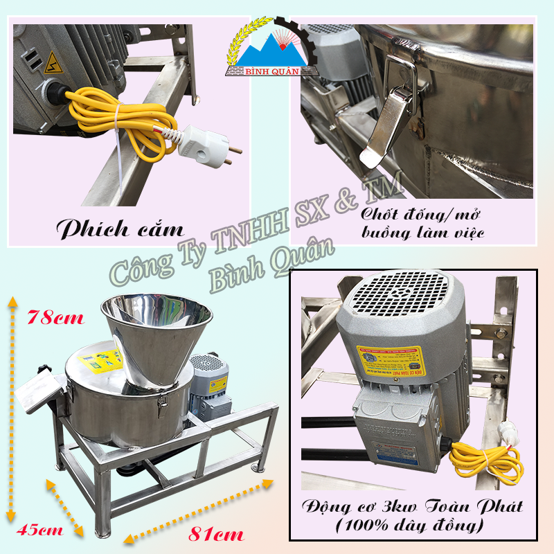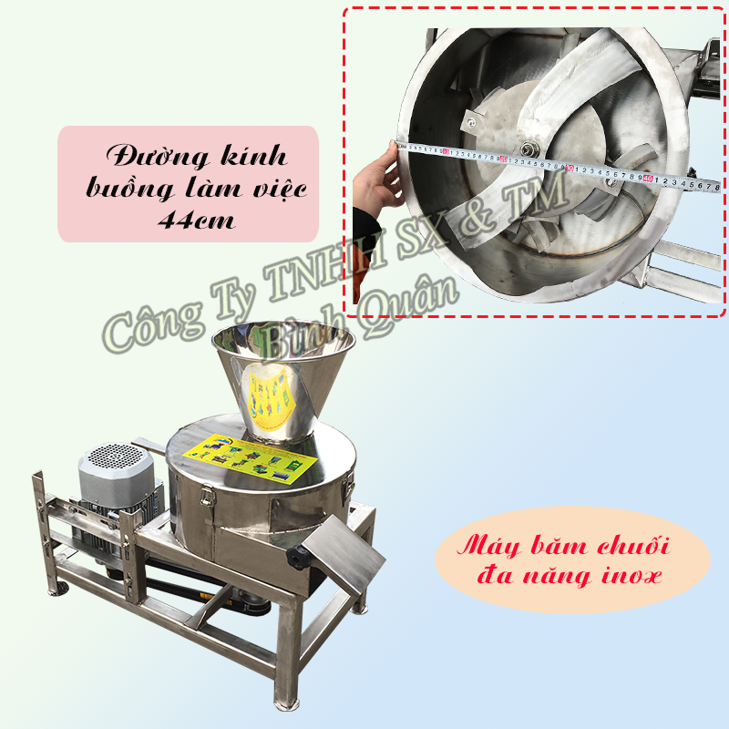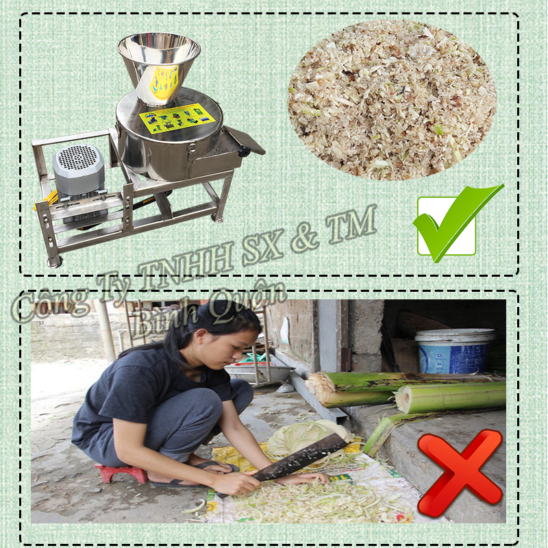 - Máy băm chuối đa năng inox (MBCI – 01) Bình Quân với tính năng thái, băm nhanh nhiều loại nguyên liệu: rau, cỏ, thân cây chuối, thân cây ngô, …