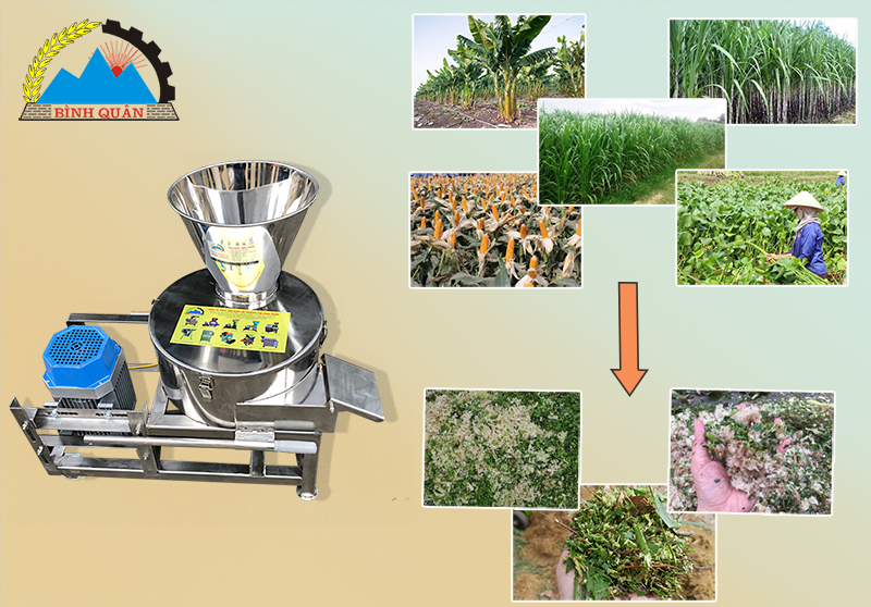 - Tính năng : Máy có chức năng thái, băm nhuyễn mọi loại nguồn thức ăn thô xanh thân cây chuối, thân cây ngô, rau muống, bèo tây, rau khoai lang,... và nhiều loại rau cỏ khác trong khoảng thời gian ngắn