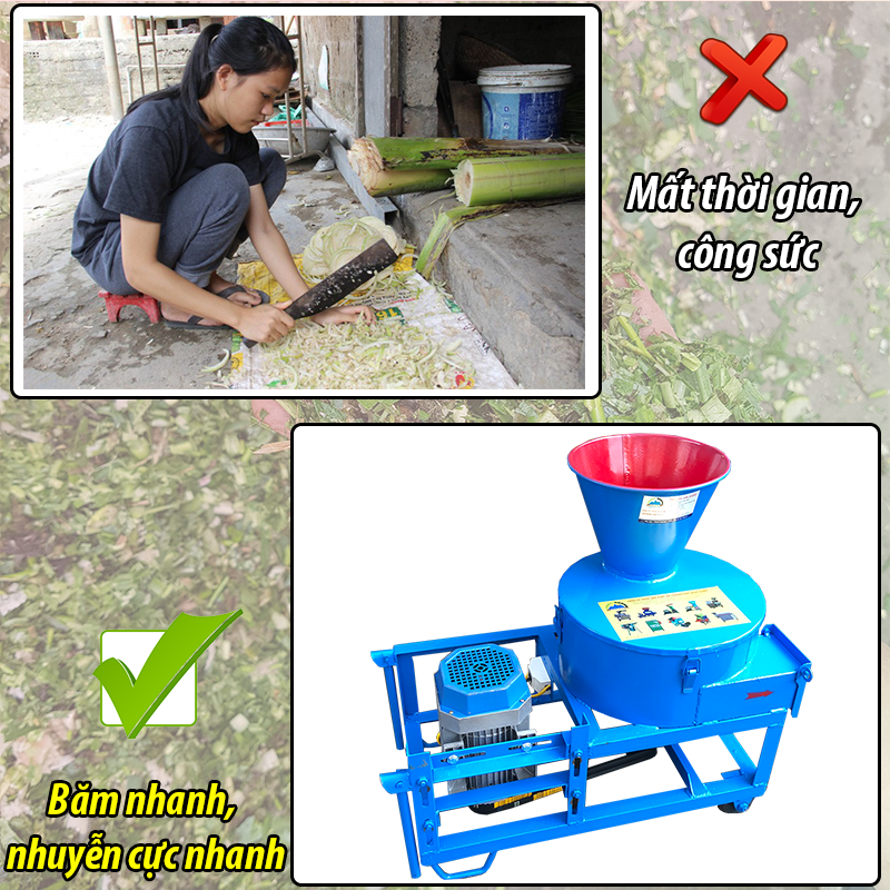 Tính năng: Băm nhỏ cây chuối trong 10 giây và các loại rau, cây cỏ voi và các loại củ quả khác...