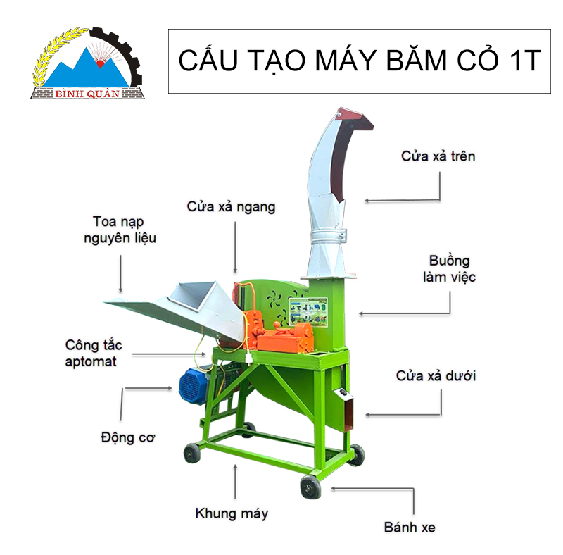 Công ty Bình Quân đơn vị trực tiếp sản xuất máy băm cỏ công nghiệp 1T hỗ trợ bà con băm nguyên liệu dạng cỏ làm thức ăn cho gia súc - gia cầm số lượng lớn mà không mất nhiều thời gian và công sức