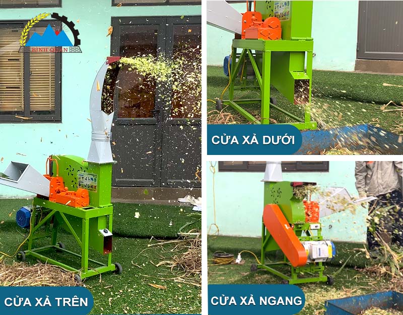Thành phẩm sau khi băm sẽ được phun trực tiếp ra ngoài cửa xả. Máy với thiết kế 3 cửa xả, thuận tiện cho người dùng thu gom