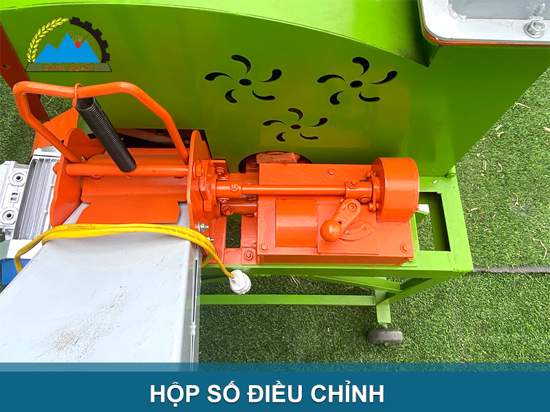 Máy băm cỏ 1T có bộ phận hộp số với 3 nấc điều chỉnh tốc độ nhanh, chậm hoặc kích thước ngắn, dài của cỏ