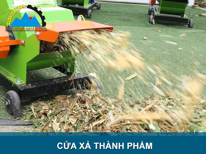 Thành phẩm sau khi băm được đưa trực tiếp ra ngoài cửa xả, phần cửa xả có nắp đậy điều chỉnh hướng phun thuận tiện cho việc thu gom thành phẩm