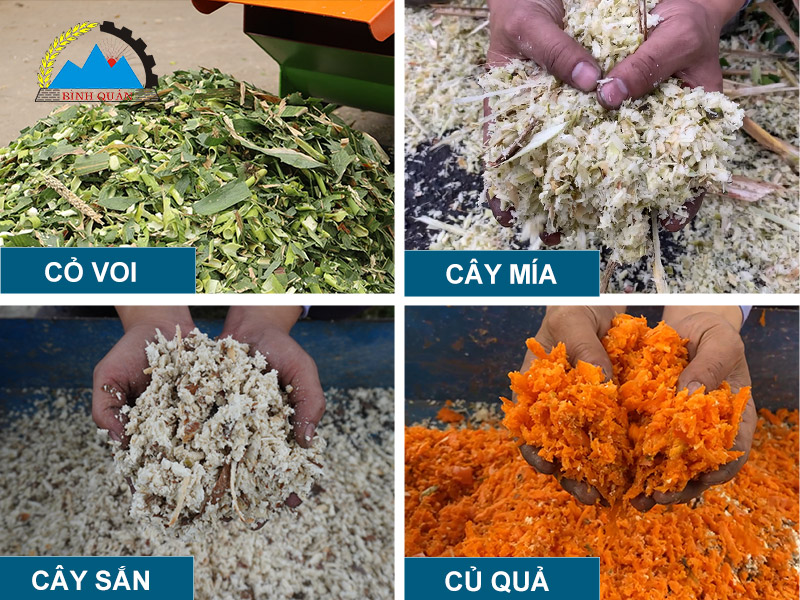 - Băm nguyên liệu dạng cỏ: cỏ voi, thân cây ngô, cỏ sả..