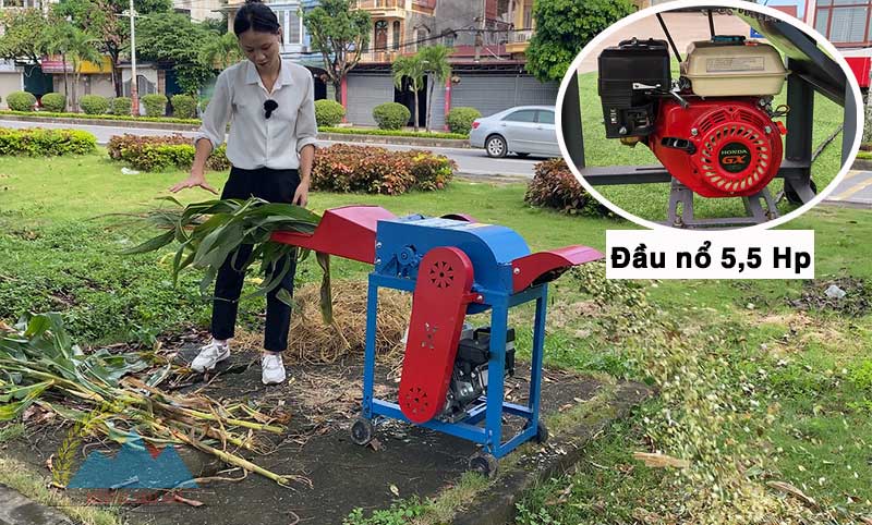 Máy sử dụng đầu nổ chạy xăng 5,5, Hp truyền tải mạnh mẽ tương tự động cơ 3,5kw. Khởi động với cơ chế giật nổ từ đầu nổ cole. Hoàn toàn có thể yên tâm cung cấp đủ lượng thức ăn trực tiếp cho trâu, bò, dê trong trang trại vài chục đến vài trăm con.