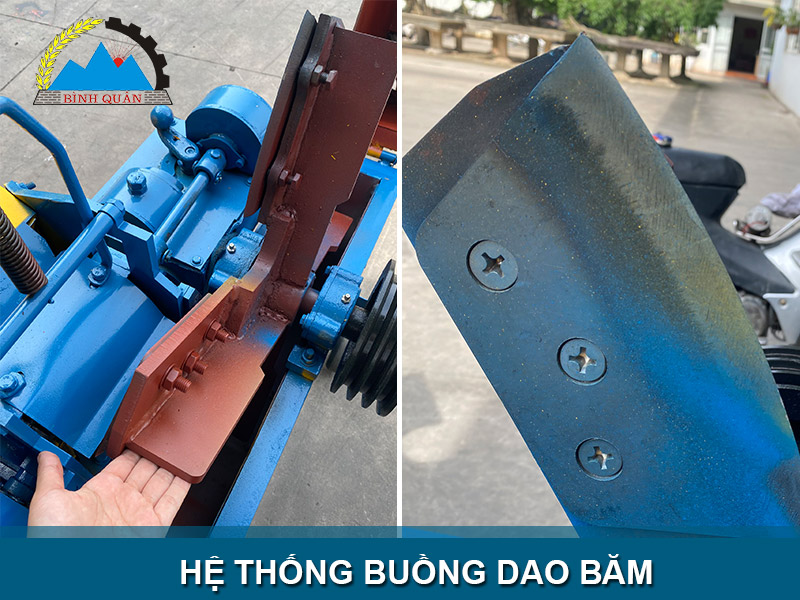 Khoang băm bao gồm 4 dao băm chính sắc bén dày 7 phân, cùng và các cánh đà lớn, đẩy thành phẩm nhanh chóng phun ra cửa xả trên, duy trì quá trình làm việc lâu dài nhờ bộ hộp số tự động