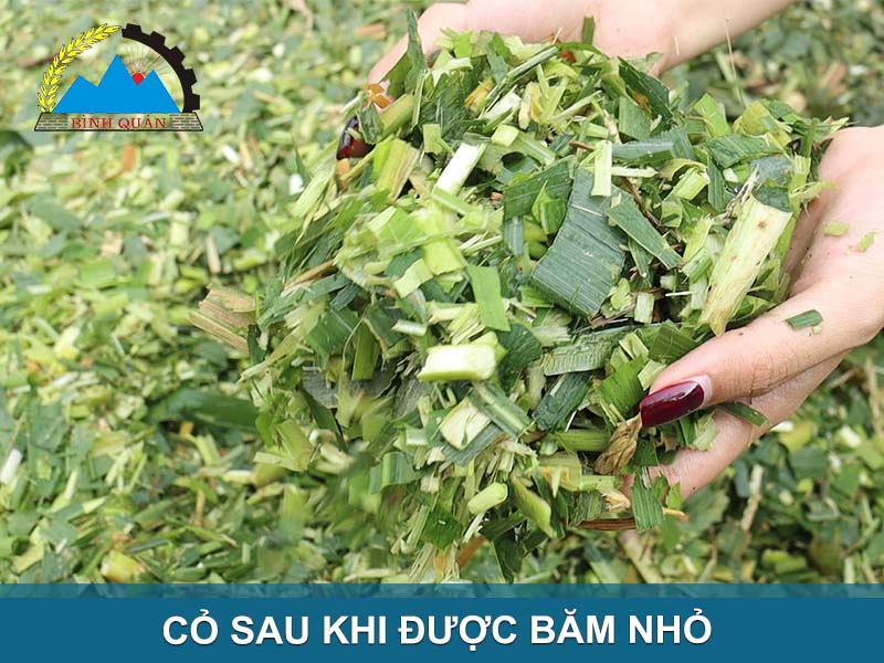 - Thành phẩm sau khi băm cho kích thước đồng đều từ 1-3 cm giúp gia súc dễ ăn - dễ hấp thụ.