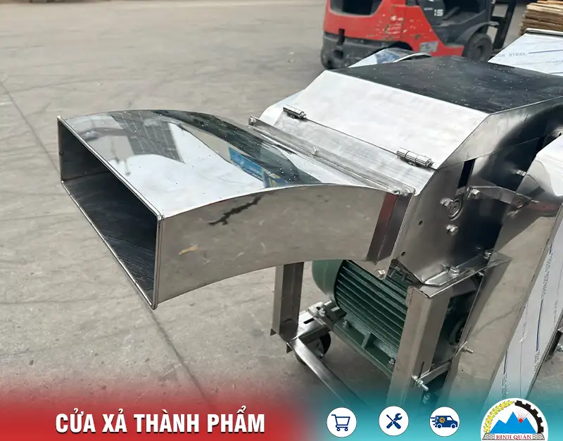 Thành phẩm sau khi băm được đưa trực tiếp ra ngoài cửa xả, phía trước cửa xả được thiết kế bo cong tạo thuận tiện cho người dùng: