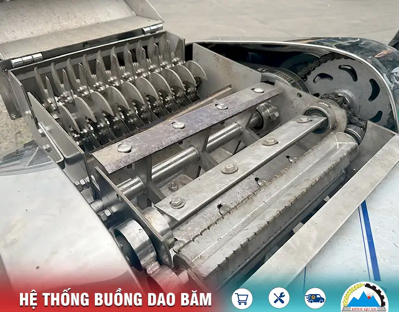 - 1 buồng băm chính gồm 4 doa to 2 lưỡi được rèn sắc bén băm nhỏ nguyên liệu