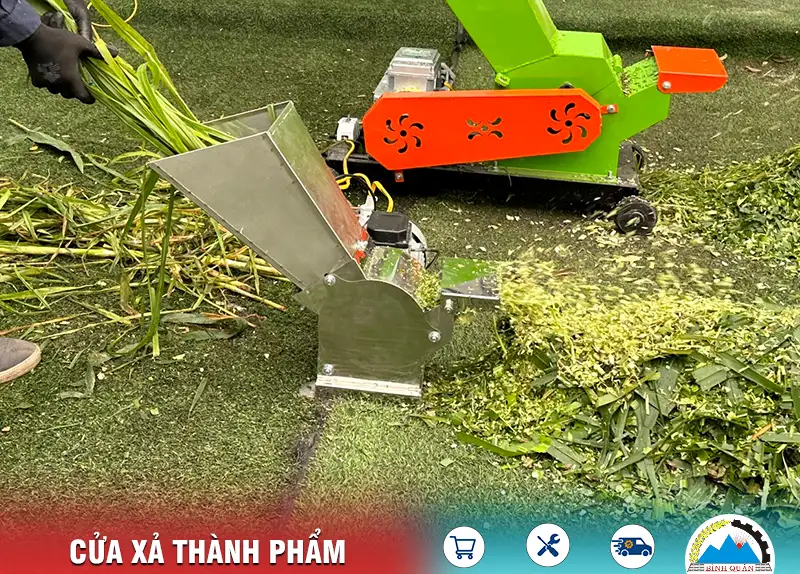 Thành phẩm sau khi băm được đưa trực tiếp ra ngoài cửa xả, phần cửa xả có nắp đậy điều hướng phun thuận tiện cho việc thu gom thành phẩm