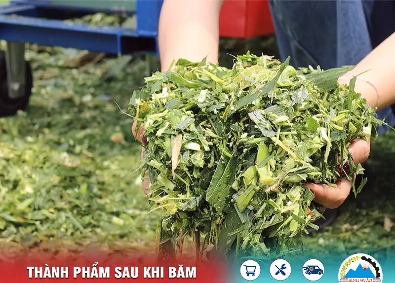 Thành phẩm sau khi băm có thể cho vật nuôi dùng ngay hoặc trộn bột cám cho vào máy ép cám thành viên dùng dần