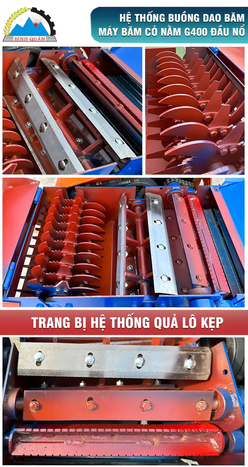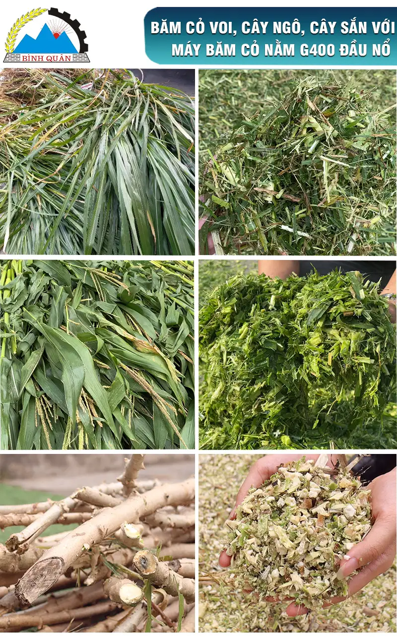 Máy băm cỏ nằm G400 sử dụng đầu nổ do công ty Bình Quân sản xuất - giải pháp hoàn hảo cho các hộ gia đình và trang trại chăn nuôi quy mô vừa và lớn