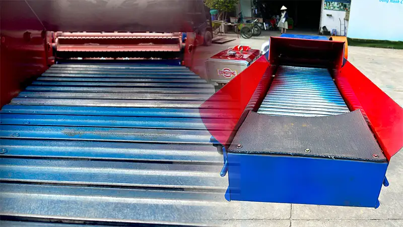 Máy băm cỏ có bằng tải nguyên liệu khi được đưa lên băng tải sẽ tự động quấn vào buồng băm