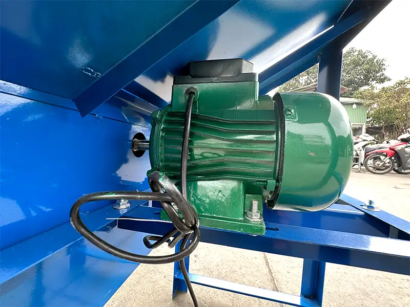 Máy băm cỏ lắp động cơ 0,75kw dùng điện gia đình 220V motor lõi dây nhôm, tốc độ quay 2900 vòng/phút cho năng suất đạt khoảng 200 - 300 kg/giờ