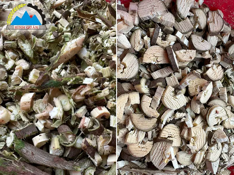 Xử lý băm nhỏ rễ, lá cây dược liệu, thân cây nhỏ, cây sả..