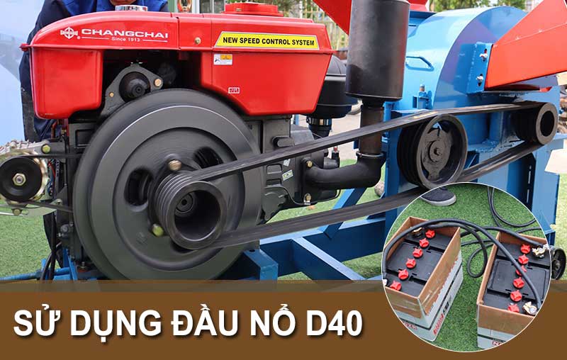 Máy băm gỗ 5T sử dung đầu nổ 40Hp cho năng suất cao, người dùng có thể chủ đọng vận hành máy ở mọi nơi không phụ thuộc vào nguồn điện hay lo điện yếu không đủ tải