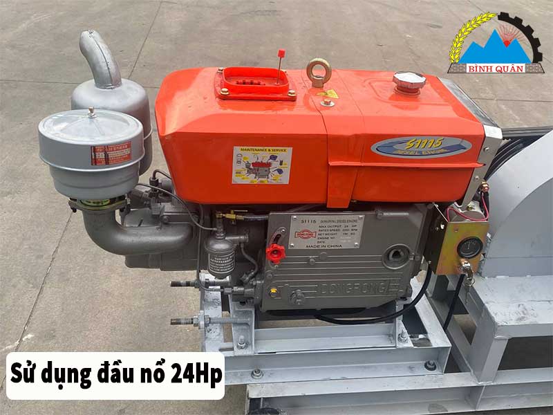 Đầu nổ 24Hp sẽ truyền chuyển động qua dây curoa đi tới buly của máy, hệ thống buly sẽ đồng thời kéo trục máy và đĩa đà quay theo cùng với 1 tốc độ nhất định.