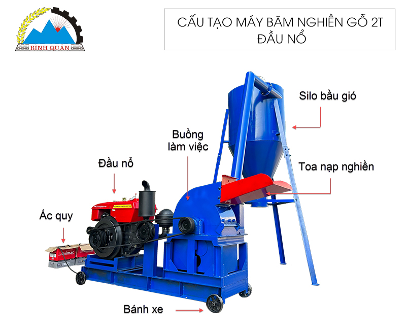 Vì sao nên dùng máy băm nghiền gỗ 2T đầu nổ Bình Quân ?