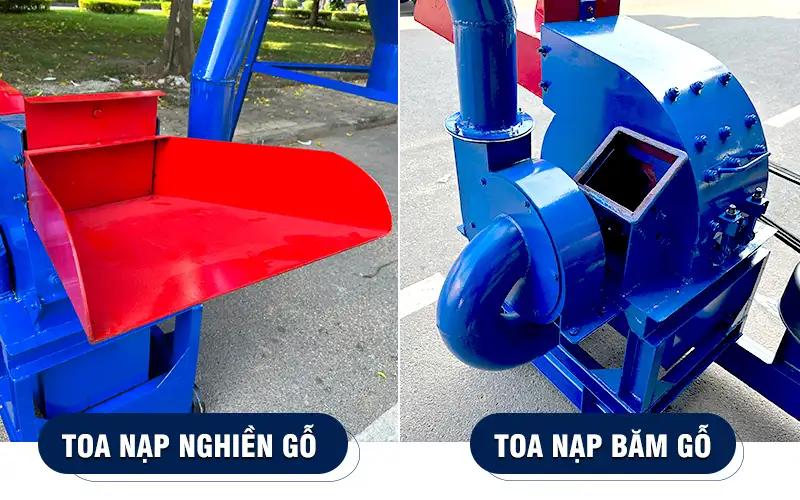 Đặc biệt, phần máy băm gỗ và bầu gió được thiết kế độc lập liên kết với nhau qua ống nối, việc sử dụng bầu hút gió để chứa thành phẩm sẽ thuận tiện cho việc thu gom hơn
