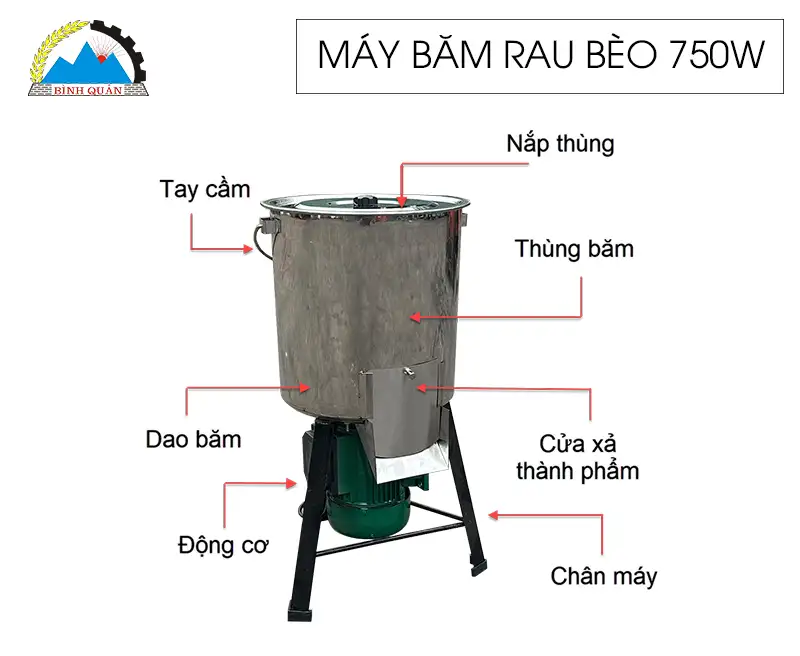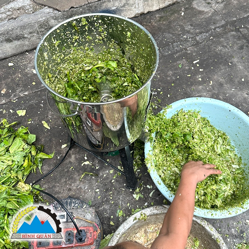 Máy băm rau bèo 750W dùng điện 220V do Bình Quân sản xuất - lựa chọn lý tưởng cho bà con muốn tận dụng nguồn thức ăn xanh làm thức ăn cho gia súc, gia cầm