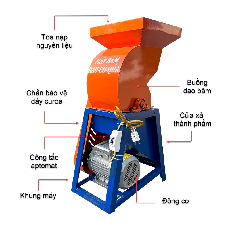 Máy băm rau củ quả 1 pha sử dụng động cơ 1,1kw motor lõi dây đồng 100% cho năng suất cao