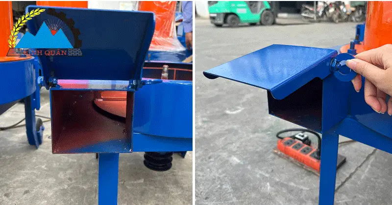 Toa nạp nguyên liệu còn được trang bị thêm tấm chắn nguyên liệu giúp trong quá trình máy hoạt động nguyên liệu không bị bắn ngược lại ra ngoài.
