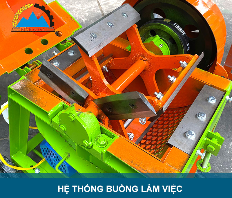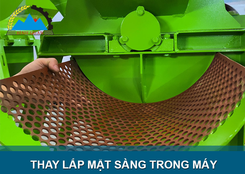 Thành phẩm sau khi đã được băm nhỏ, chui lọt qua các lỗ sàng sẽ đi xuống cửa để di chuyển ra bên ngoài.