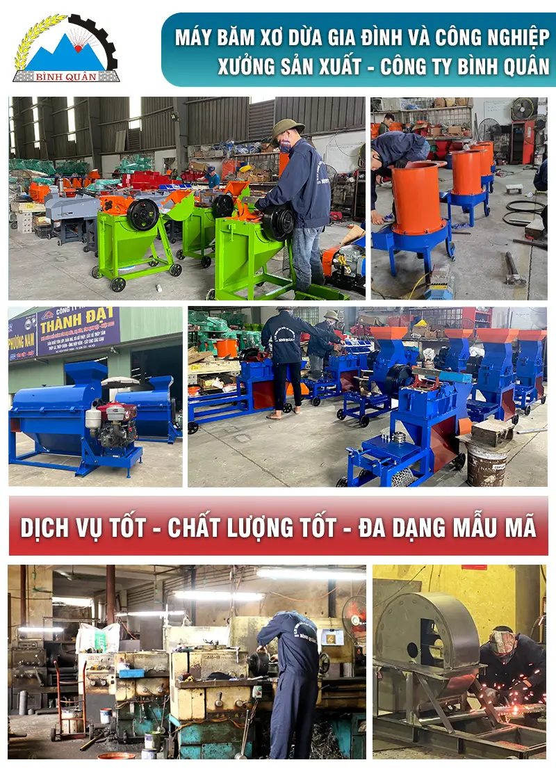 Công ty Bình Quân - là đơn vị trực tiếp chế tạo máy xay xơ dừa tại Hà Nội với cam kết 100% mới chính hãng - không qua đại lý trung gian