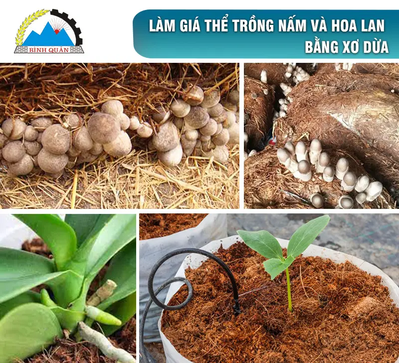 - Mùn dừa rất hợp làm giá thể trồng nấm và hoa lan, kích thích cây phát triển và hạn chế các loại sâu bệnh, an toàn cho người dùng sử dụng.