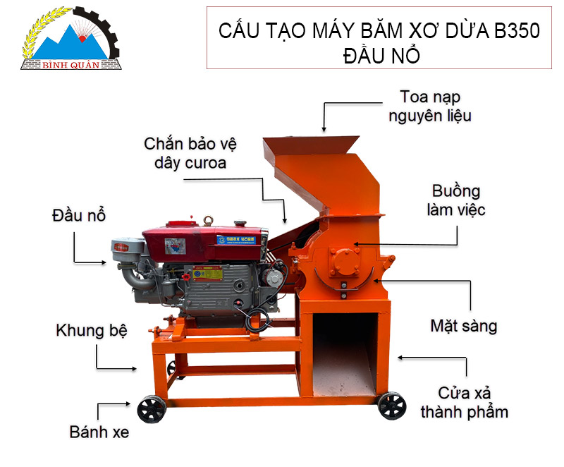Những tính năng của máy băm xơ dừa B350 lắp đầu nổ