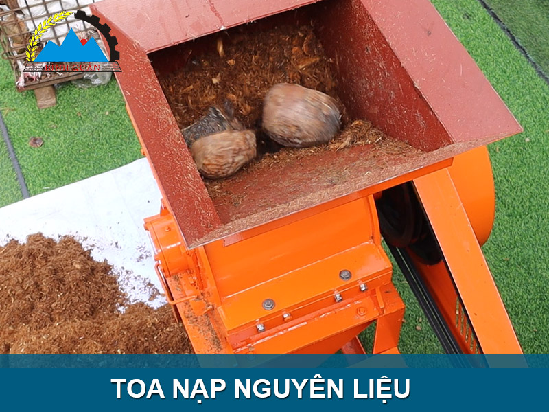 Toa nạp được thiết kế dạng đứng độ cao vừa tầm người dùng. Phần phễu nạp thiết kế miệng rộng có thể chứa nguyên vỏ trái dừa mà không phài băm nhỏ