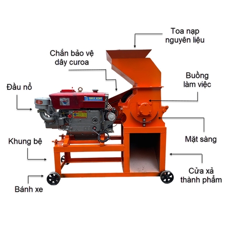 Cấu tạo máy băm xơ dừa B350 lắp đầu nổ