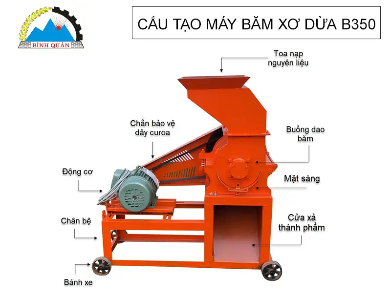 Cấu tạo máy băm xơ dừa B350 phiên bản mới